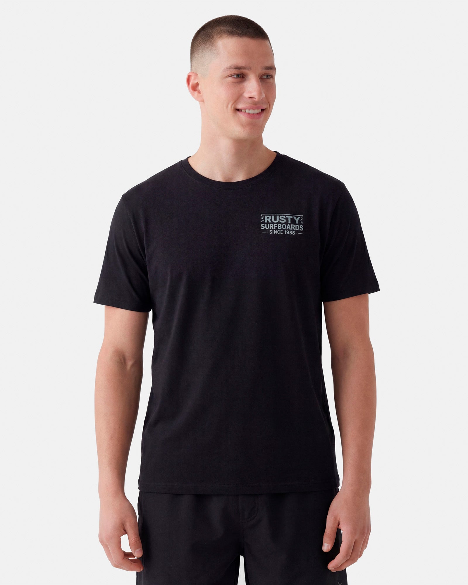 A Camiseta Manga Curta Rusty Woodcut Preta combina conforto, qualidade e estilo urbano, sendo ideal para o dia a dia e composições casuais.